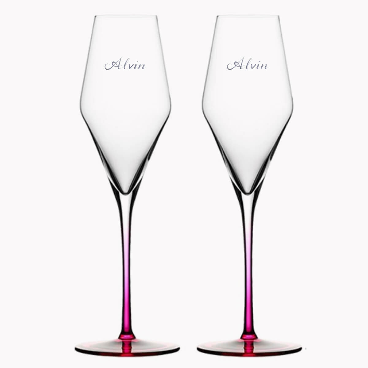 粉紅世界情人甜蜜專屬 Pink World粉紅杯梗設計添加典雅質感,水晶透亮戀人香檳對杯客製預定