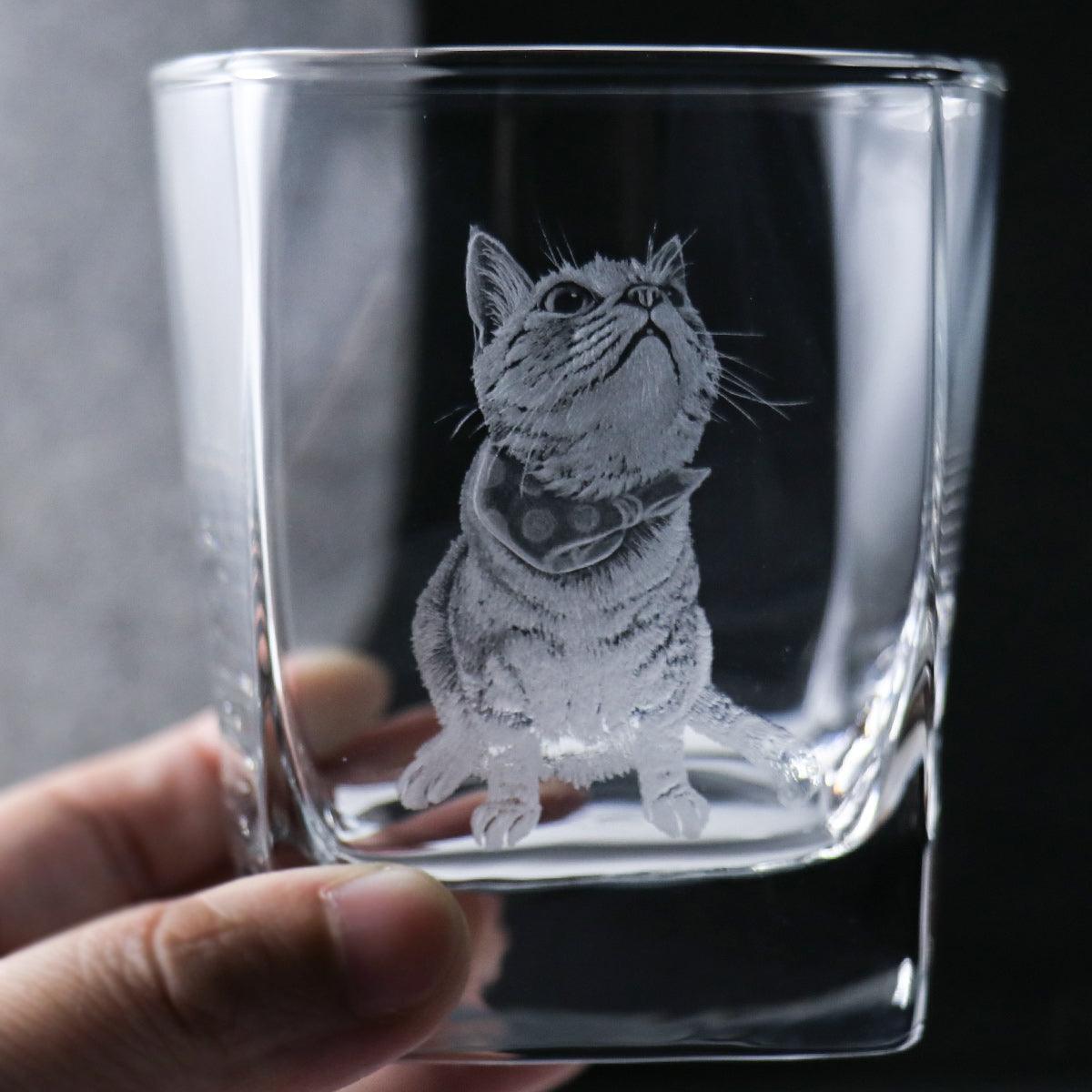品飲的時候貓咪親親杯!! 不用煩惱要去哪裡找畫師,MSA設計師會幫您的寵物手繪後手工雕刻在玻璃杯上,誕生一份精緻的手工禮物