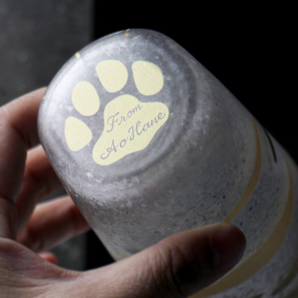 刻字:由於玻璃為霧面效果,建議雕刻位置為杯底肉球或金箔區塊上較明顯,其他位置則為隱藏版,手工刻紋永不消失。 -