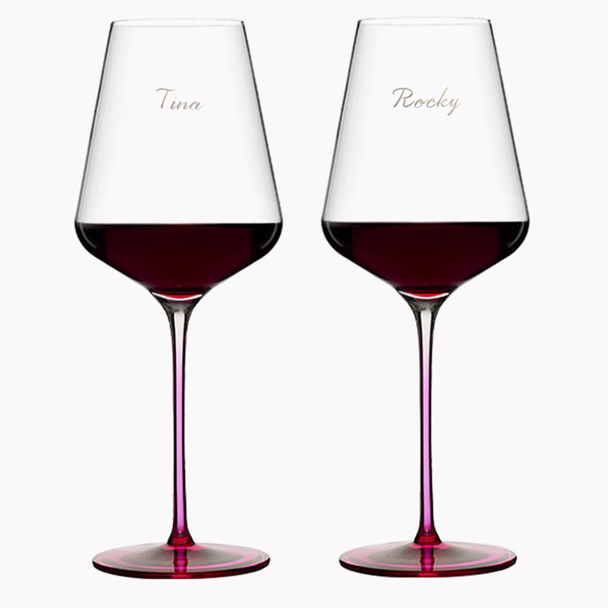 (一對價) 645cc 夢幻櫻粉水晶紅酒對杯 婚禮刻字酒杯客製送禮 粉紅梗