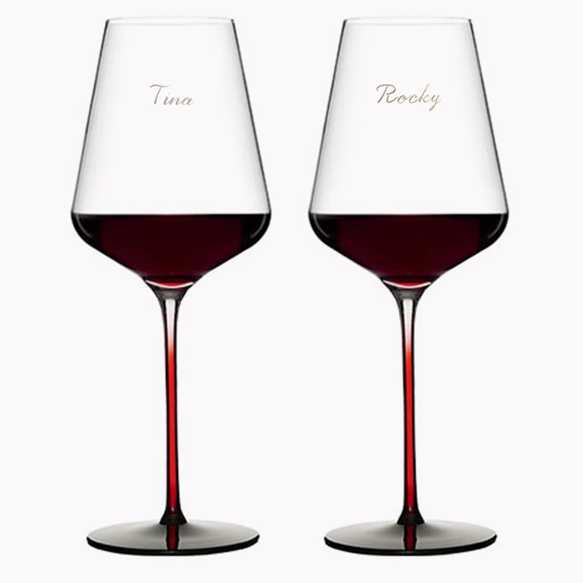 紅色杯梗設計添加典雅質感,水晶透亮婚禮紅酒對杯訂做