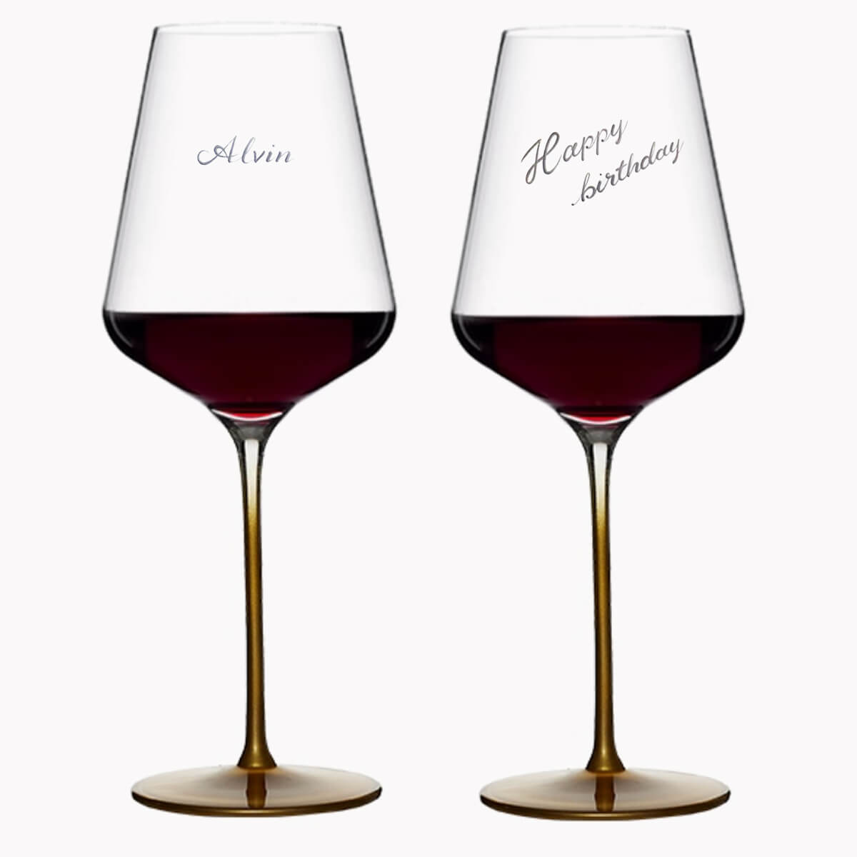 高奢霧金杯梗設計添加典雅質感,水晶透亮婚禮紅酒對杯訂做